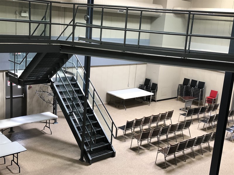 The facility includes a full kitchen, bathroom facilities, a large seating area on the main floor that can fit 75 people and a boardroom on the upper level.