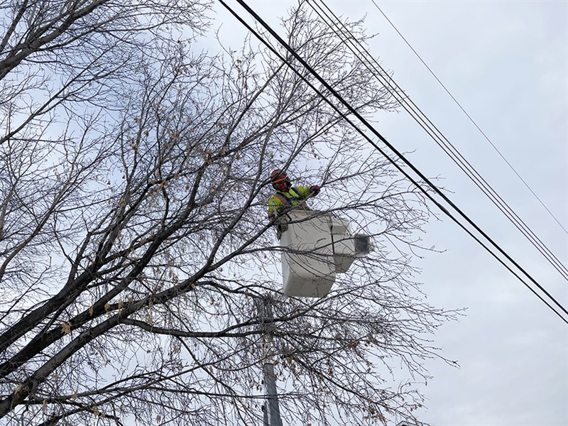 To keep our community safe, the Town of Ponoka assesses and trims tree branches encroaching on power lines on an annual basis or as needed at other times of the year.